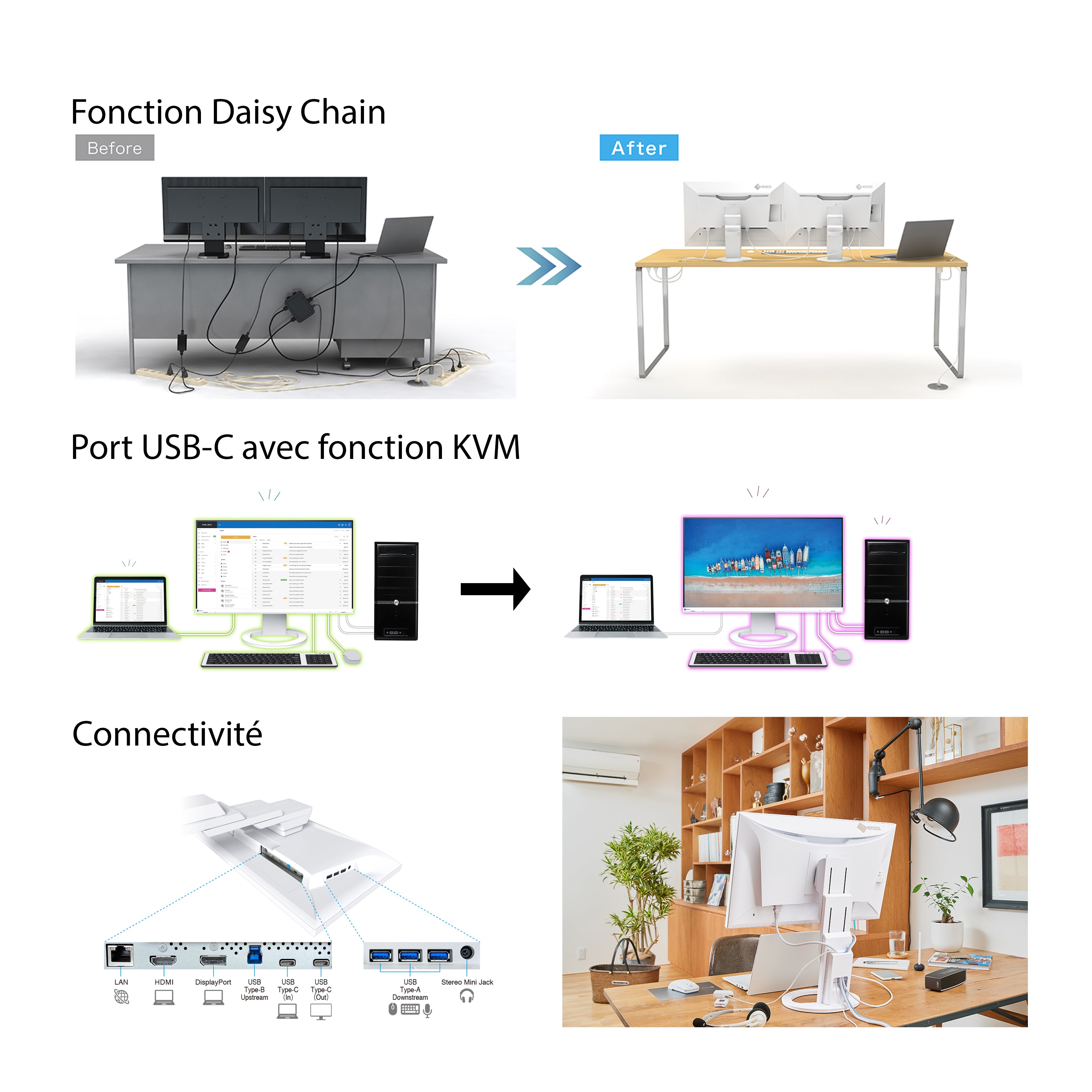 FlexScan EV2490 : Une connectivité avancée pour un bureau optimisé